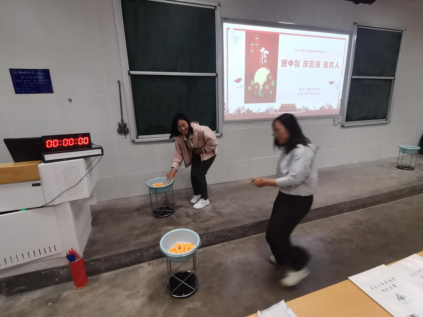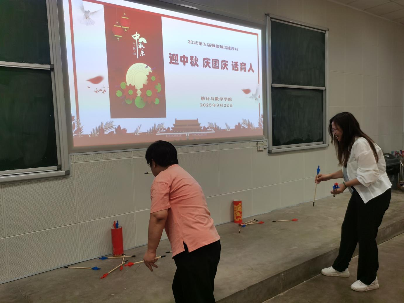 9月22日下午,72886必赢网址全体教职工在二教106教室举办了“迎中秋 庆国庆 话育人”夹乒乓球、投壶等工会活动,这同时也是学院第五届师德师风建设月系列活动之一。