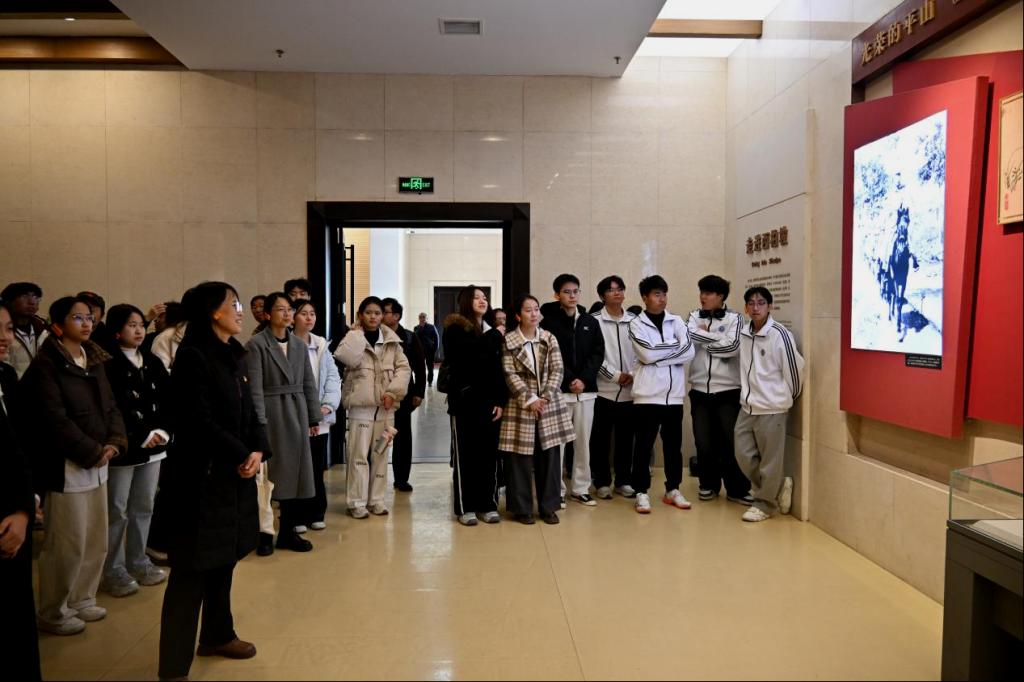 在西柏坡中共中央旧址,全体成员跟随讲解,依次瞻仰了毛泽东、朱德、刘少奇、周恩来、任弼时、董必武等老一辈革命家的旧居以及军委作战室、新华社旧址等地。泥砖砌筑的平房、斑驳的桌椅、红蓝毛线标注的作战地图……每一处历史痕迹都令人驻足凝思、心潮起伏。师生们还在七届二中全会旧址亲身感受会场氛围,深切体会中国革命胜利的来之不易。