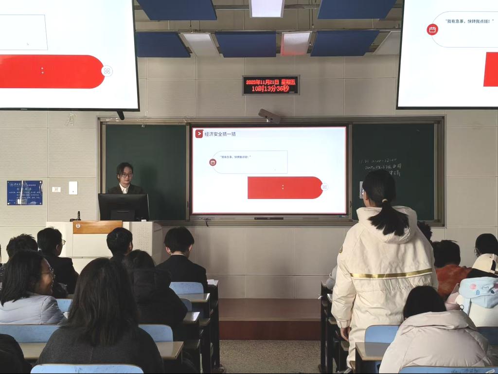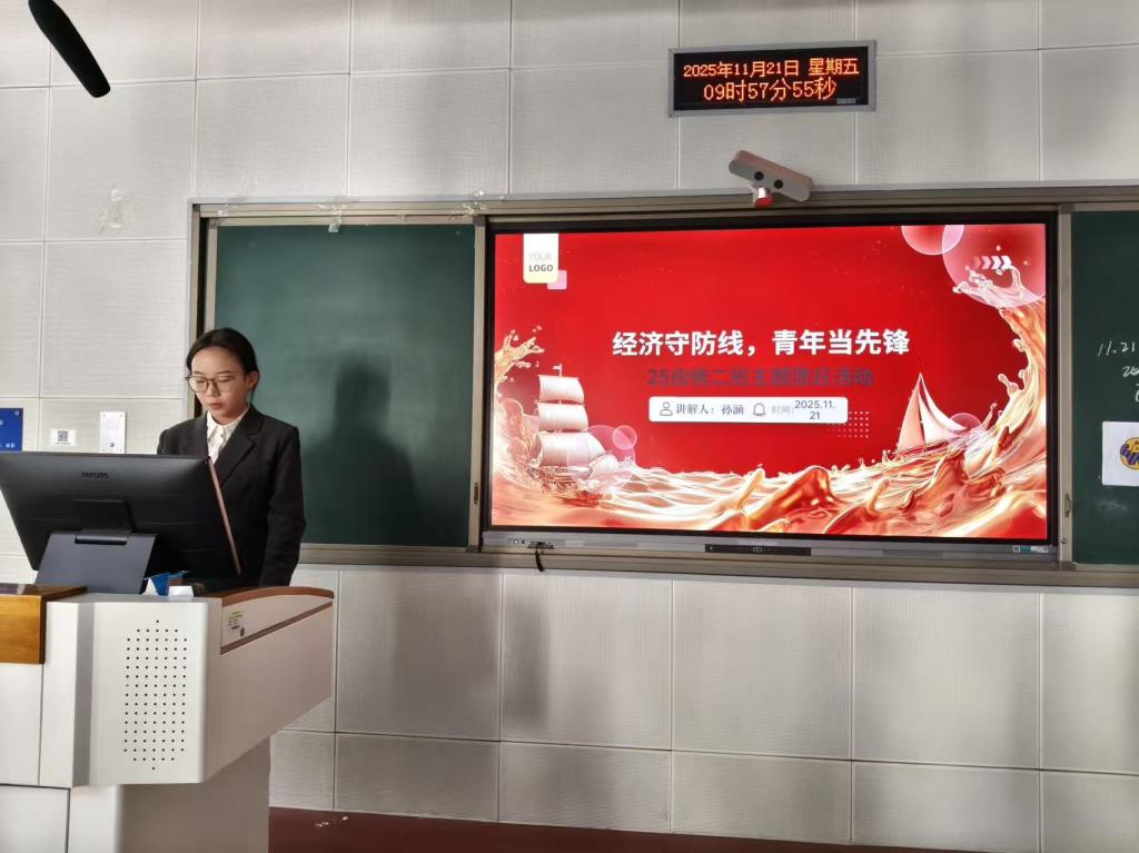 活动伊始,团支书孙涵以热情洋溢的开场白揭幕,清晰地阐述了此次团课的核心主题,并播放了经济安全科普视频。随后,她结合经济安全的重要性,着重强调了此次团日活动的背景及其深远意义。