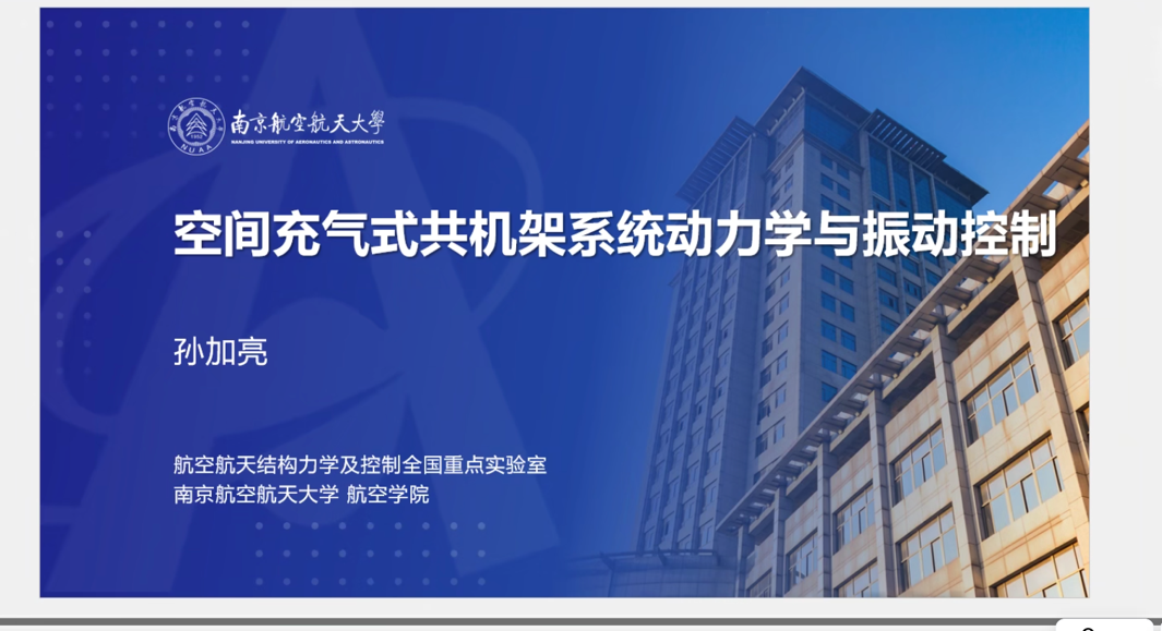 3月26日下午,南京航空航天大学孙加亮老师应72886必赢网址邀请在线上作题为“空间充气式共机架系统动力学与振动控制”的学术报告,相关专业师生参会。
