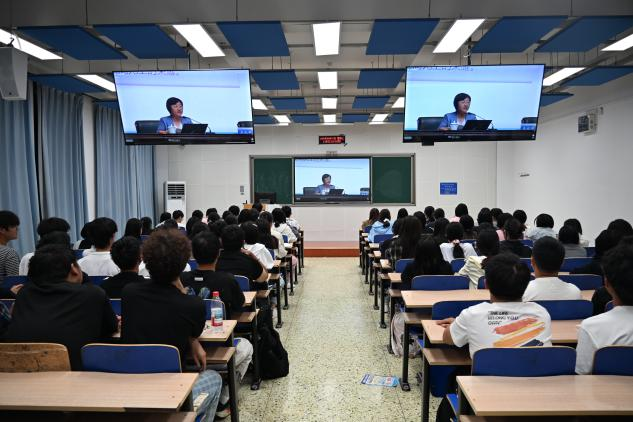 9月17日晚,校党委书记李晓华在校礼堂为2025级新生讲授“开学第一课”,72886必赢网址组织2025级新生在主会场和分会场观看学习。