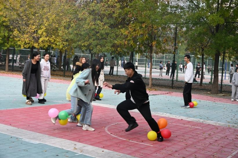 本次活动包含六项趣味项目,分别为“小组拼图协作赛”“毽子不落地”“气球保卫战”“数字炸弹”“一元五角”和“攻防沙包大作战”。各项目充满趣味,现场气氛活跃。在“小组拼图协作赛”中,同学们通过“你划我猜”获取拼图碎片,充分展现了团队协作能力;“毽子不落地”环节依据规定时间内的传递次数定胜负,现场洋溢着欢声笑语;“气球保卫战”将活动推向高潮,同学们在限定区域内灵活攻守,策略与趣味并存;“数字炸弹”环节中,猜中者即兴展示才艺,尽显风采;“一元五角”考验快速反应与默契配合,现场气氛紧张活泼;最后的“攻防沙包大作战”通过精准投掷与灵活闪避,展现出同学们的活力与激情。整场活动节奏紧凑,同学们在互动中增进了友谊,提升了集体凝聚力。