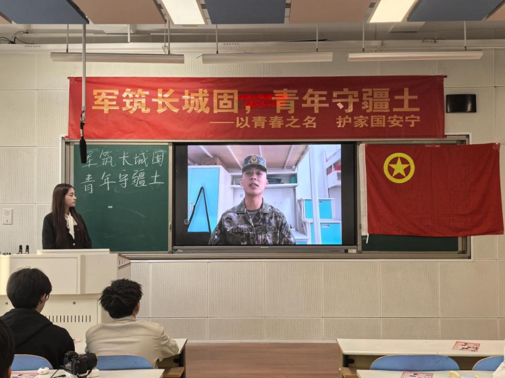 活动伊始,团支书杨雪热情开场,带领同学们共同观看爱国影片。银幕上,革命先辈的热血壮举、戍边战士的坚守身影缓缓铺展,生动诠释了“国家的富强、民族的复兴,离不开巩固的国防和强大的军队”。