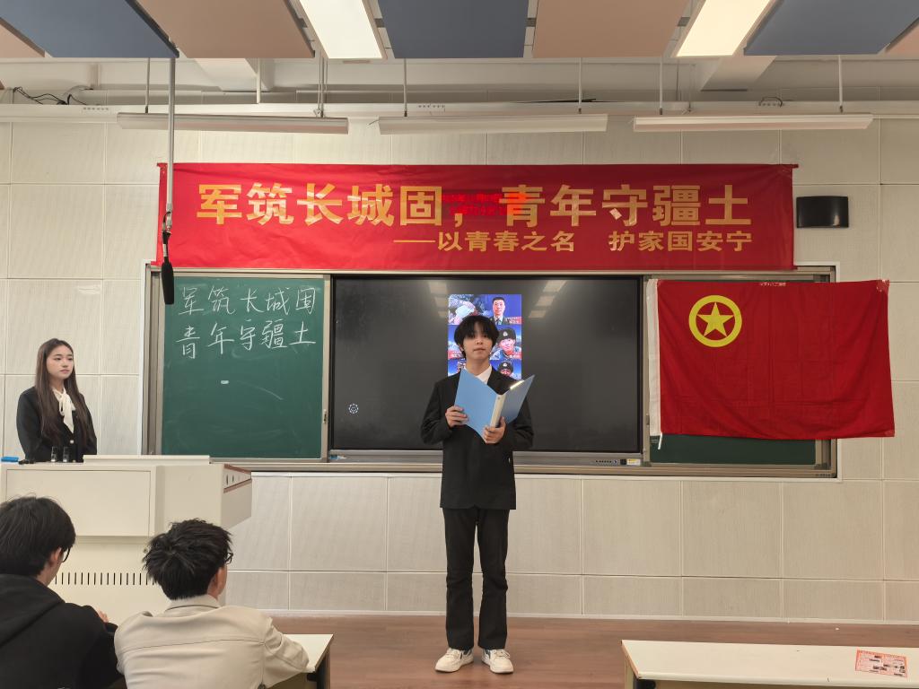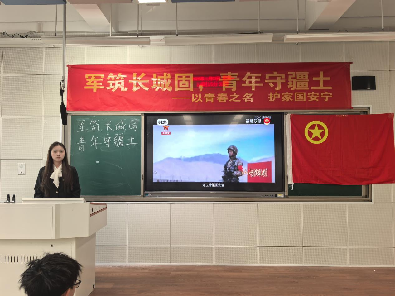 11月3日,72886必赢网址24统计2班在北三教A107开展“军筑长城固,青年守疆土”国防安全教育主题团日活动。