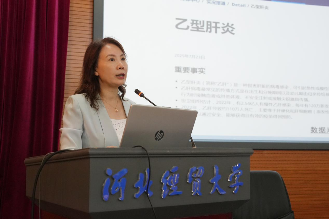 河北省肿瘤防治办公室副主任贺宇彤则聚焦“乙肝危害与疫苗防护”,用通俗易懂的语言讲解乙肝病毒的传播途径,同时深入阐述乙肝疫苗的防护价值,让学生们理解“主动接种疫苗既是保护自己,也是对他人健康负责”。