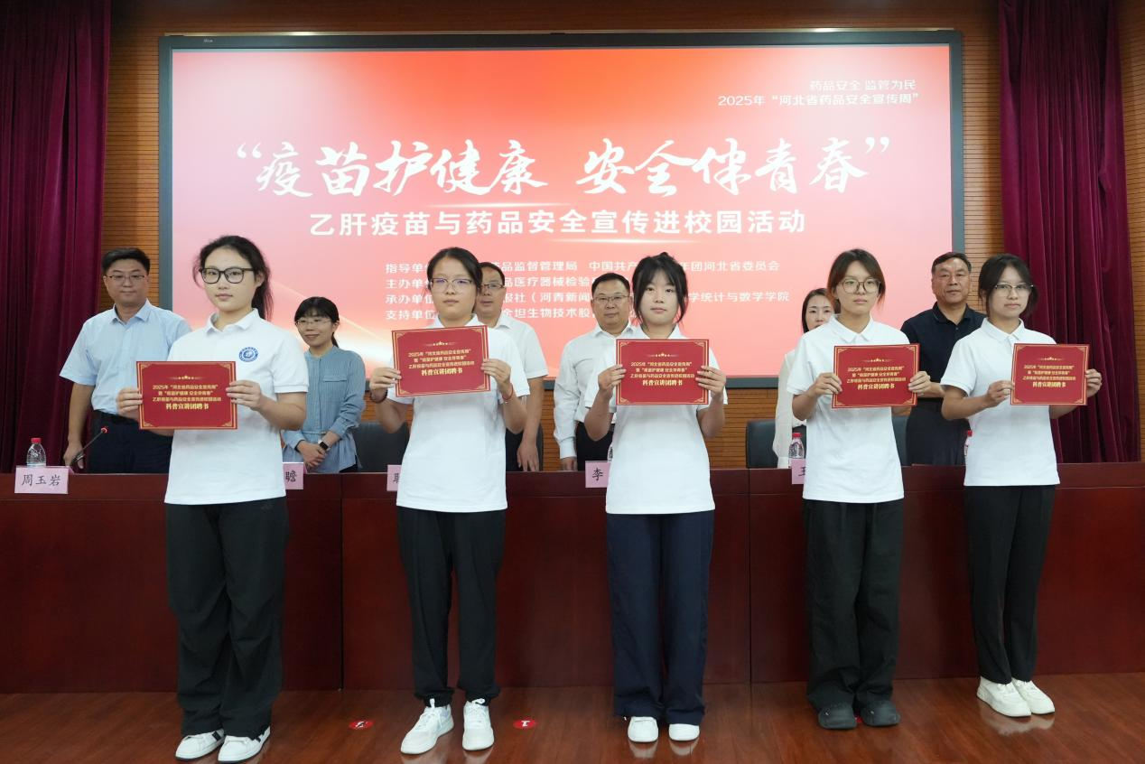 为充分发挥青年学生在健康知识传播中的桥梁作用,仪式上,河北省药品监督管理局党组成员、副局长李挥,中国共产主义青年团河北省委员会学少部部长王绍博等领导,共同为必赢官网科普宣讲团颁发聘书。
