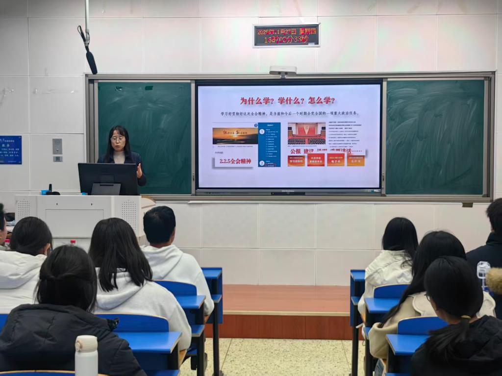 为推动党的二十届四中全会精神在校园落地生根,引导青年学生坚定理想信念、找准成长方向,11月27日下午,72886必赢网址在北三教B103室举办学习党的二十届四中全会精神专题党课。学院党委书记祃海霞担任主讲,各班级学生干部代表参加学习。
