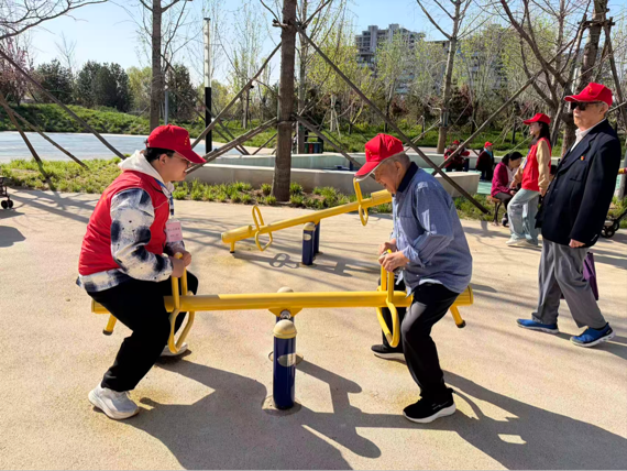 为了让老人们收获更多快乐,重拾童趣,志愿者们还陪同老人们体验了公园的跷跷板。简单的游戏让老人们笑容满面,仿佛回到了孩童时光,现场气氛轻松又欢快,一幅幅温暖的陪伴画面定格在春日美景中。