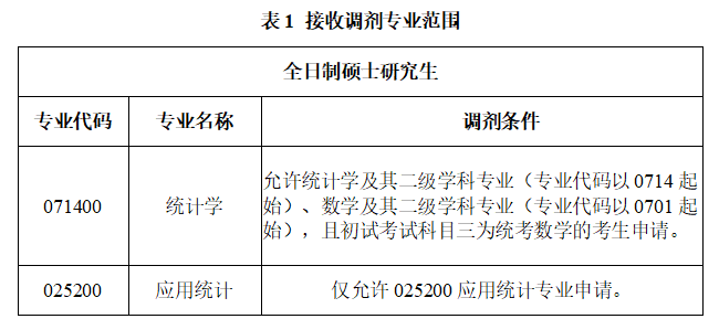 4.应用统计专业仅接收应用统计专业(025200)考生调剂申请。