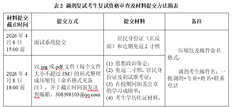 (四)调剂考生复试资格审查及材料提交方法