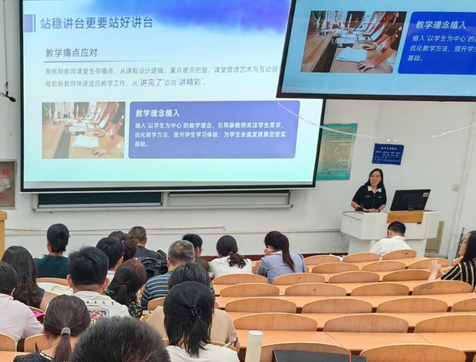 王玲书教授结合多年教学与科研经验,从课程设计、科学研究及学生指导等多个方面,系统分享了作为指导教师的心得与方法。她特别强调,青年教师在激发教学创新动力的同时,应高度重视教学内容的科学性和严谨性,通过反复“磨课”与“听课”不断优化教学环节,真正做到“站稳讲台、站好讲台”。