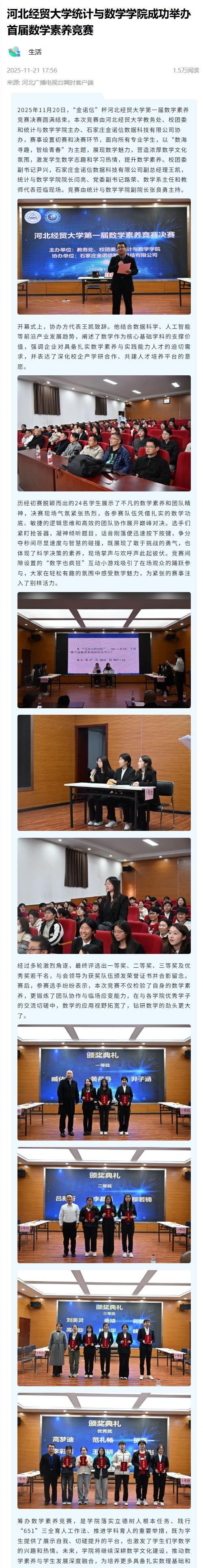 【河北广播电视台冀时客户端】72886必赢网址成功举办首届数学素养竞赛